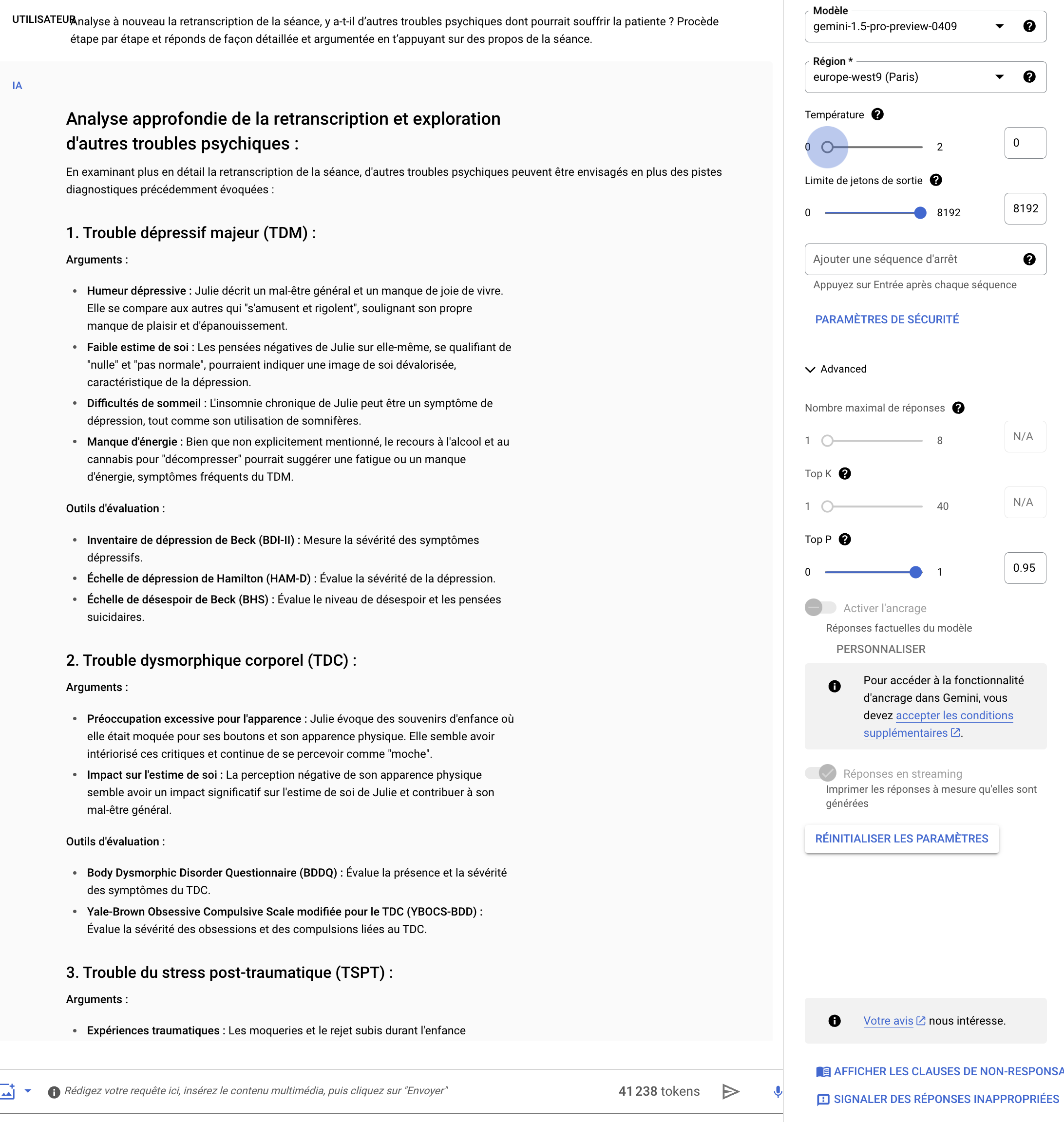 En examinant plus en détail la retranscription de la séance, d'autres troubles psychiques peuvent être envisagés en plus des pistes diagnostiques précédemment évoquées :